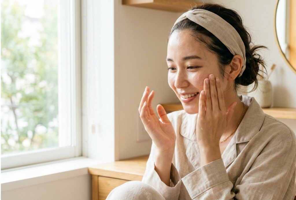 肌荒れの改善には、保湿が最も基本的かつ重要なケアです。洗顔後はなるべく早く化粧水や保湿クリームを使って水分と油分を補い、肌のバリア機能を高めましょう。化粧水はハンドプレスで肌になじませるように使い、乳液やクリームで水分の蒸発を防ぐのが基本的な手順です。