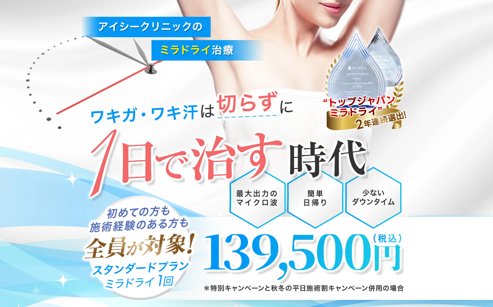 アイシークリニックではワキガ治療の無料相談を受け付けています。